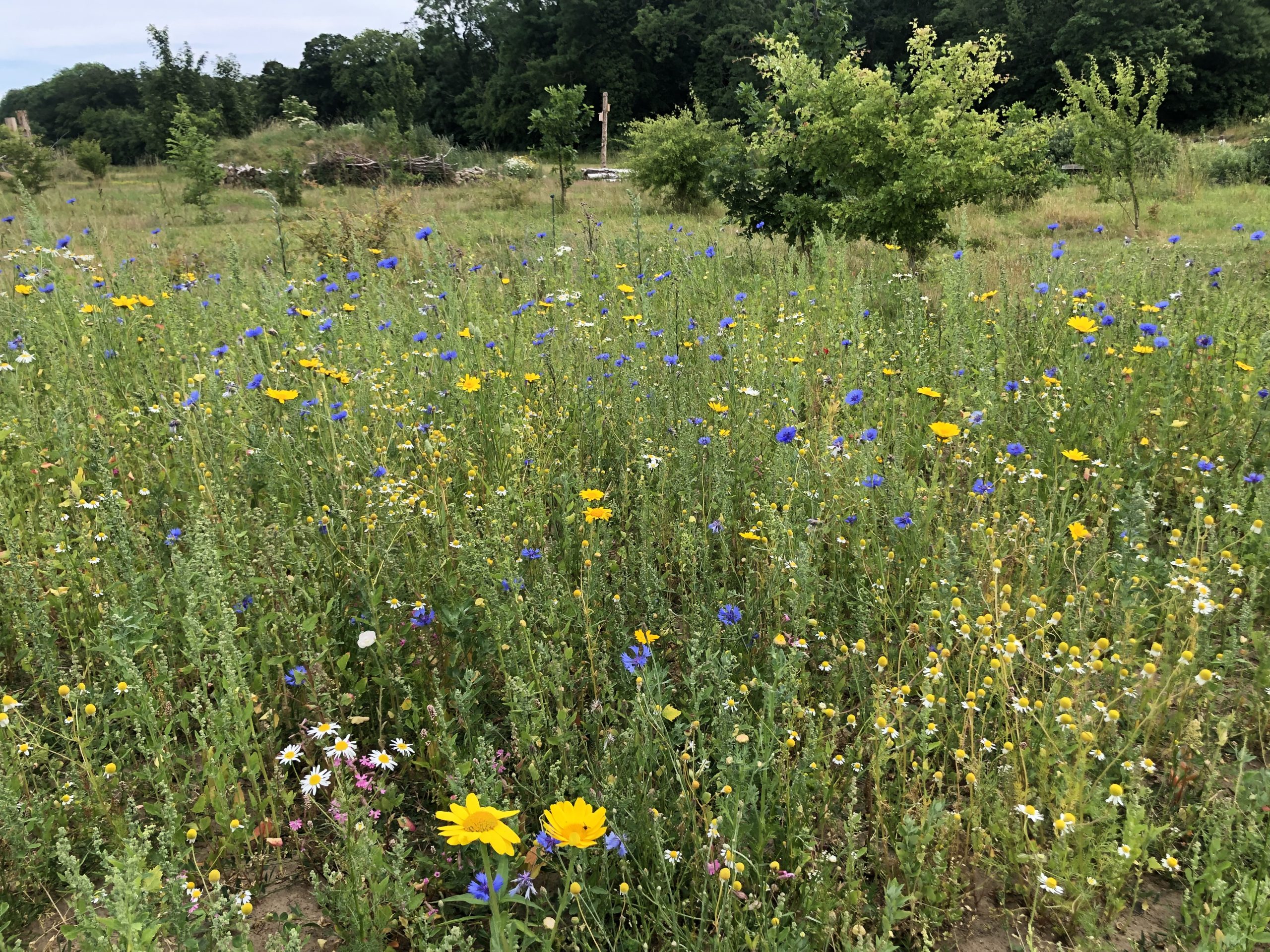 Som en del af den løbende pleje udføres der 1–2 årlige høslæt, hvor det afklippede materiale fjernes for at sikre de bedst mulige vækstvilkår for vilde blomster og urter. Resultaterne er tydelige: sammensætningen af både græsser og blomster har ændret sig markant gennem årene. Hvor området tidligere var domineret af få græsarter, står der nu et mangfoldigt planteliv med et væld af blomster, urter og flere forskellige græsarter. Denne øgede artsrigdom har samtidig tiltrukket langt flere insekter og en større variation af arter end tidligere.